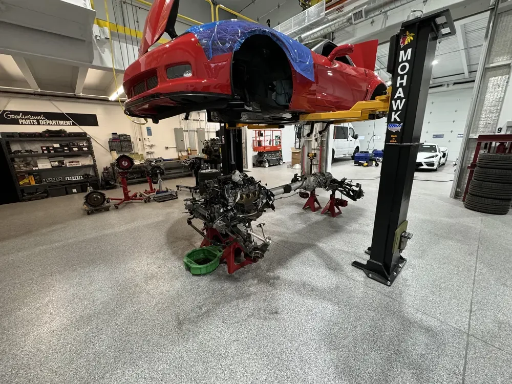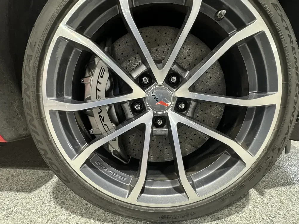 The LS7 was opened and refreshed for stronger breathing and repeatable power: reworked cylinder heads with upgraded valves, guides, and springs paired to a camshaft upgrade. An MGW short-throw shifter sharpens engagement without adding harshness, while massive Brembo carbon rotors bring stopping power in line with the output—confident pedal feel and fade resistance under sustained driving.