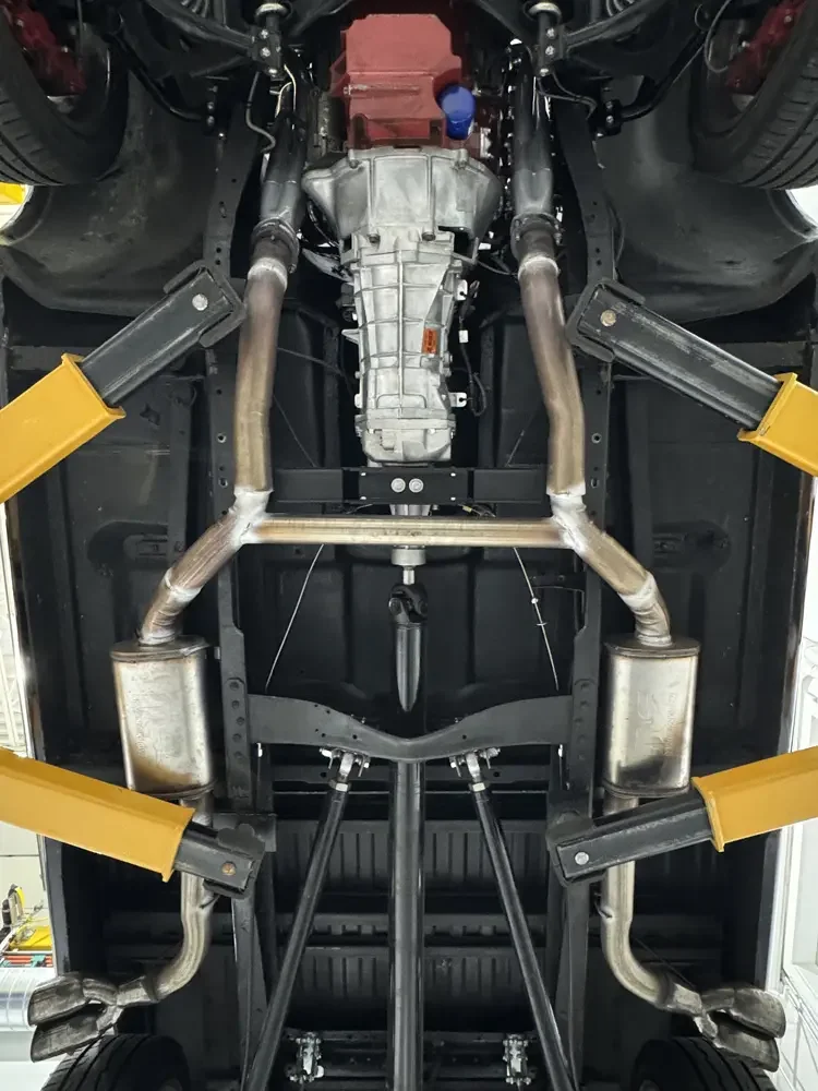 The updates continue underneath, where a new wheel and tire package adds grip and stance. Upcoming work includes custom inner fenderwells for clearance and a chassis stiffener package to ensure the truck can put its new power to the ground.