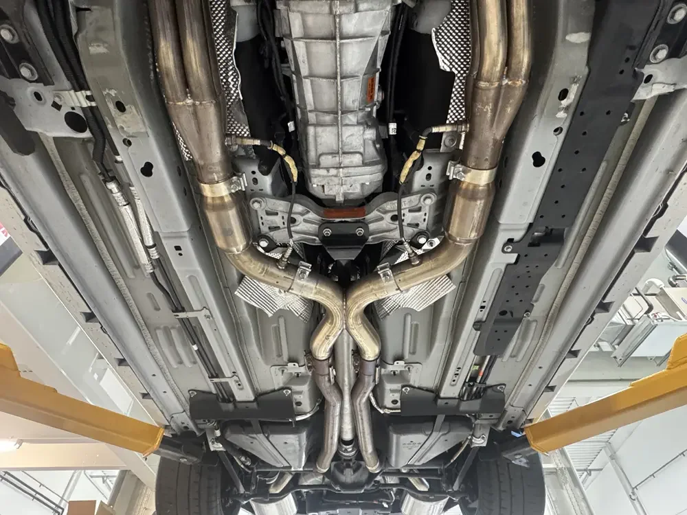 The stock setup was replaced with a Whipple 3.0L supercharger upgrade kit, paired with a VMP Boost-a-Pump and Injector Dynamics fuel injectors to ensure proper fueling under boost. Exhaust flow was improved with Stainless Works long-tube headers, while the drivetrain received a Mantic triple-disc clutch to handle the added torque. Calibration was completed in collaboration with Goodnough Performance, using KTR’s Mainline Hub Dyno.