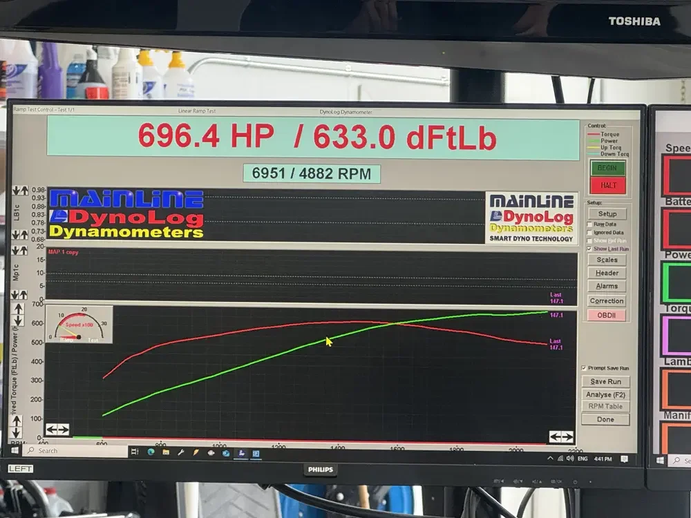 With only 5,000 miles on the odometer, this GT500 arrived in like-new condition but ready for tasteful upgrades. The owner wanted more power without compromising the car’s character, so we installed a Whipple 3.0L supercharger package with supporting fuel and exhaust upgrades. Calibrated in-house on our Mainline Hub Dyno, the result is a GT500 that delivers 696 whp with factory drivability intact.
