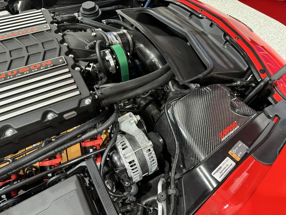 - LT4 · Magnuson TVS 2650 supercharger · Corsa carbon-fiber CAI · Too High PSI billet valve covers