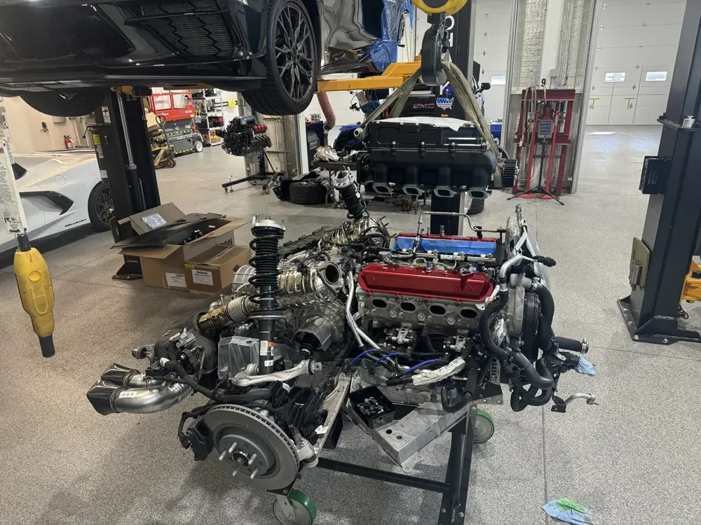 This clean 2023 C8 received the full KTR white-glove treatment. The car was picked up and transported back to our facility for a proper performance upgrade package. It all started with installing the Lingenfelter C8 Magnuson Supercharger Stage 1 Kit, designed for a factory-quality fit and finish.